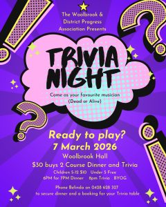 A sausage sizzle will be available from 6pm for $3, and guests are encouraged to bring a plate to share for supper. This is a family-friendly event, with a lucky door prize to be drawn on the night.